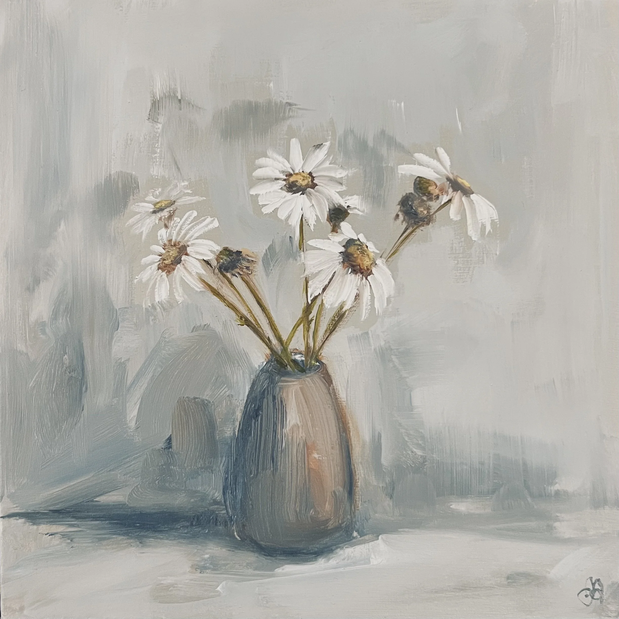 Wild Daisies, 2025. 20x20cm x 4cm, oil paint on cradled FSC timber.